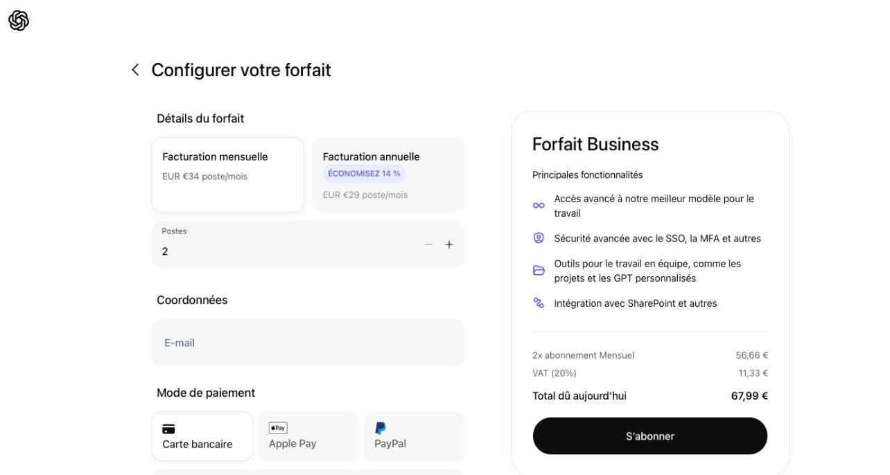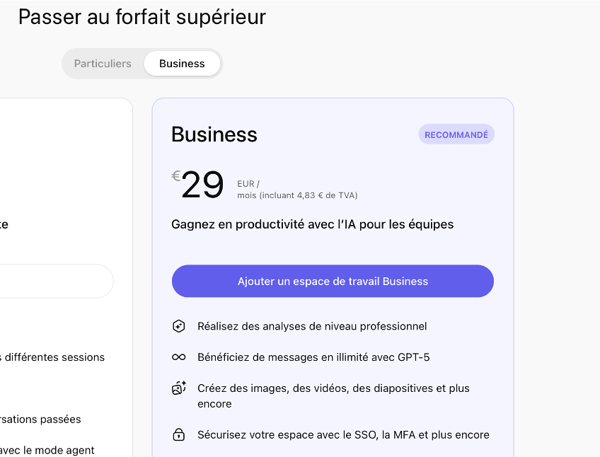 Regardons ensemble si – comme je le pense – le plan Business (anciennement Team) est aujourd’hui la solution la plus pertinente pour la majorité des professionnels, indépendants comme entreprises. (À noter que l’offre Enterprise, conçue pour de très grandes organisations et reposant sur des engagements contractuels spécifiques, n’est volontairement pas abordée ici.)